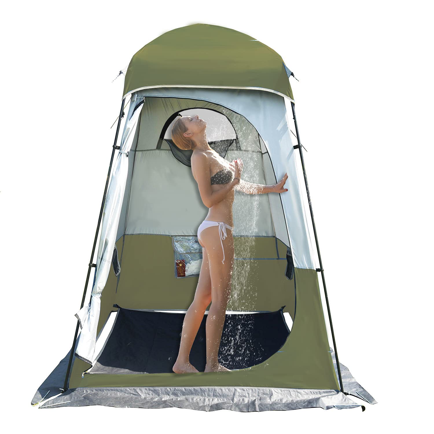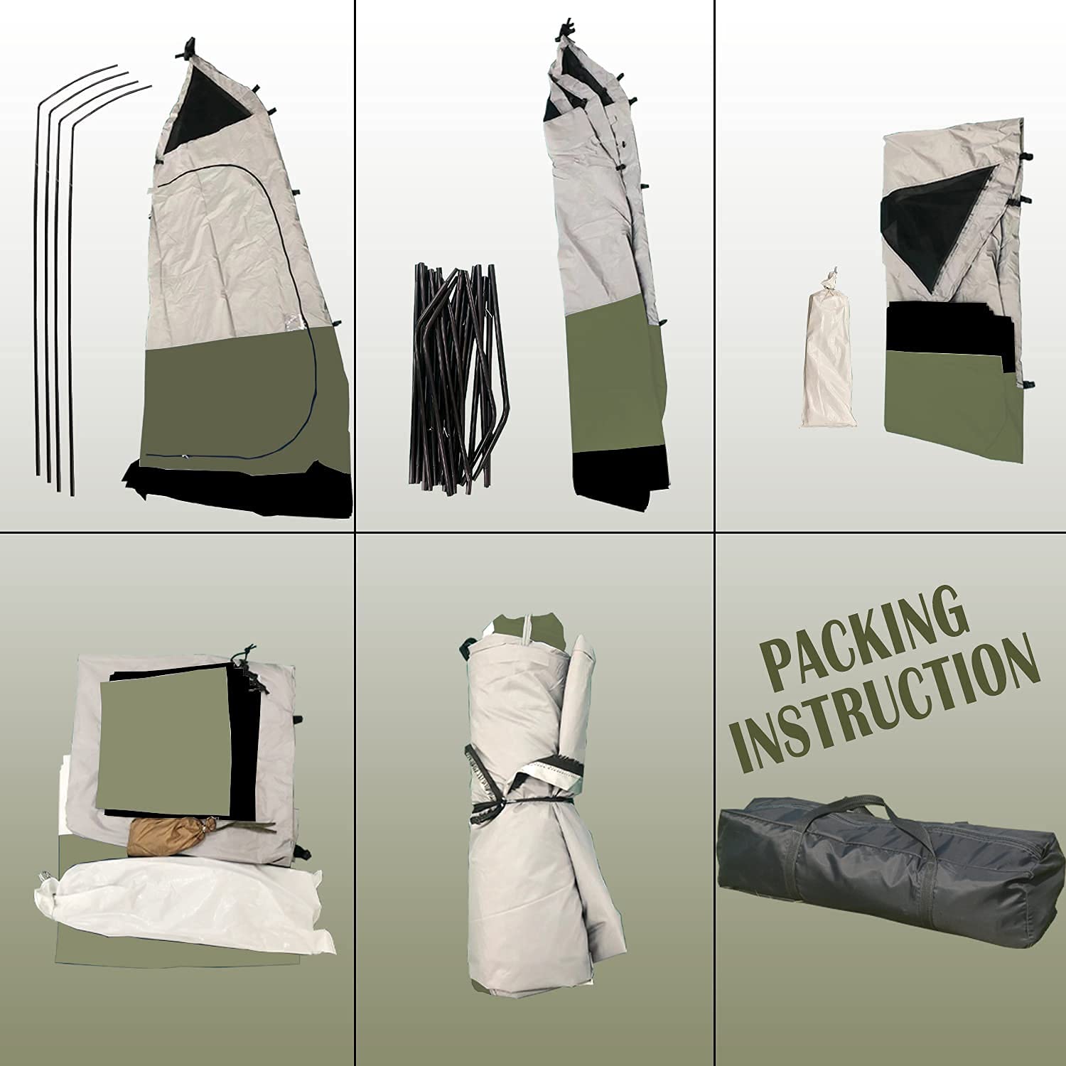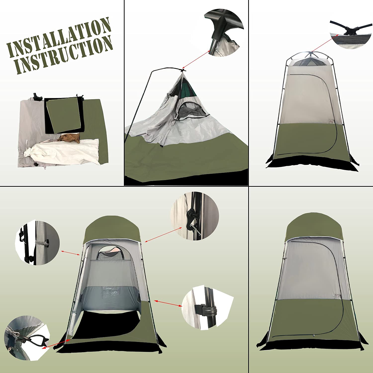 - 【MULTIPLE USE】: Our portable easy set up privacy shelter is suitable for using in outdoor activities even such as Beach Bathing, Camp Dressing,Toilet Using and Out door Animal Watching etc, it is the best choice for you as Shower Tent, Bathroom Camp, Dressing Room Camp, Changing Tent, Fishing Shelter, Children Playing and Protecting Shelter.