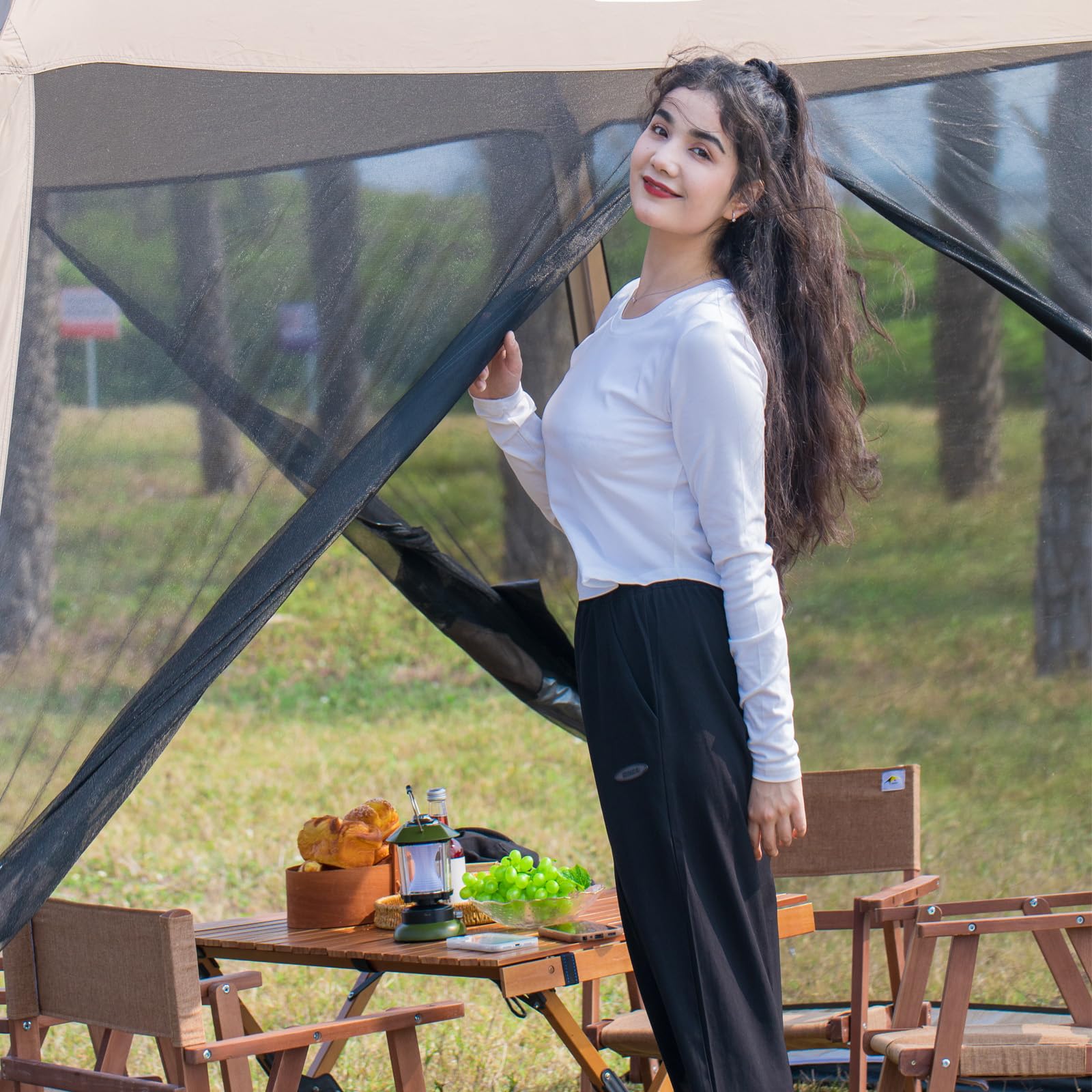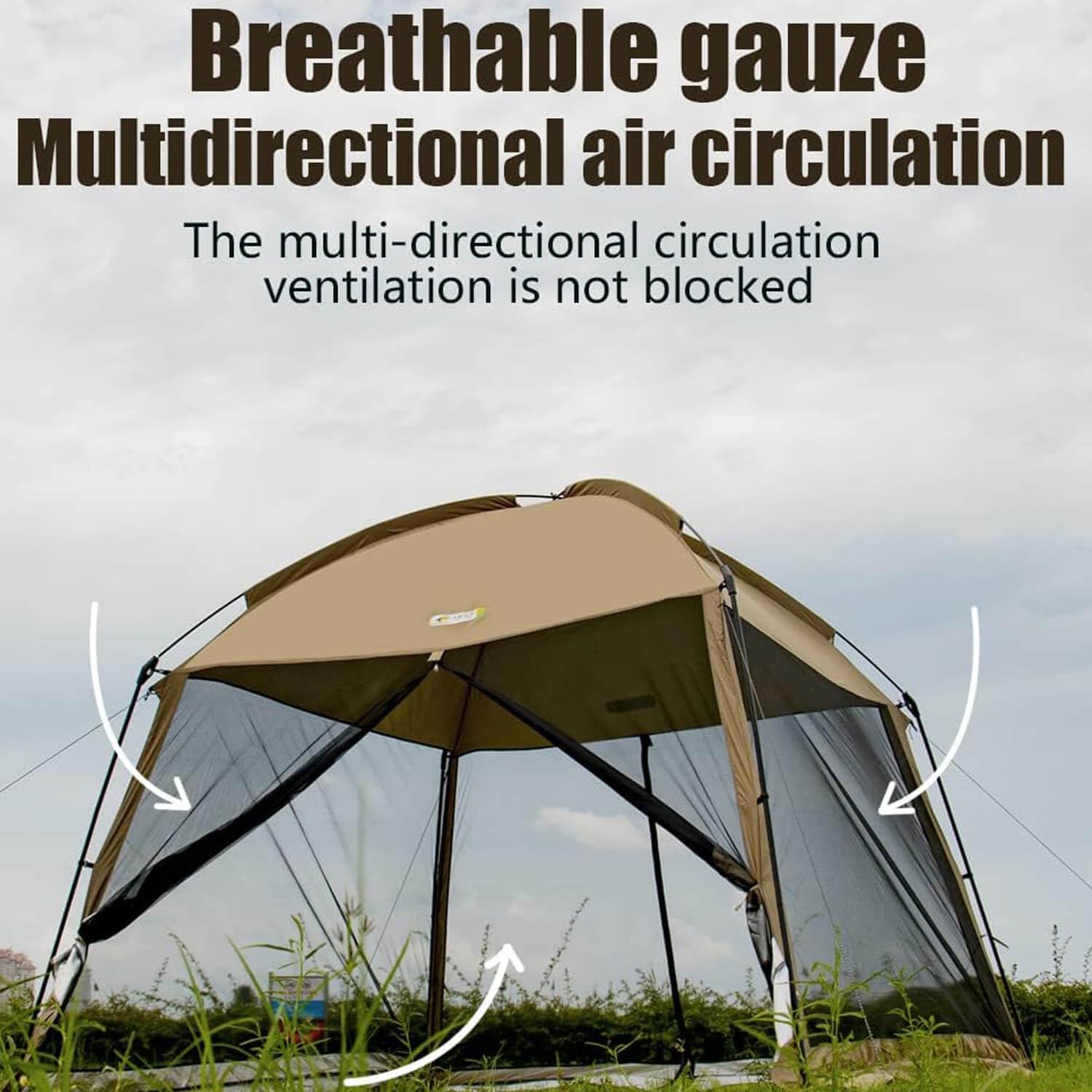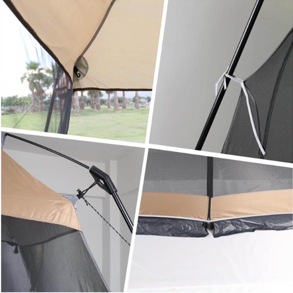 - 【BREATHABLE INSTANT CANOPY 】Breathable mesh allows fresh air to flow into this screen room for camping to keep you cool. Double-sided zippers, and curtain which can be rolled up at the back. It offers protection from bugs and the sun so you can enjoy more time outdoors!