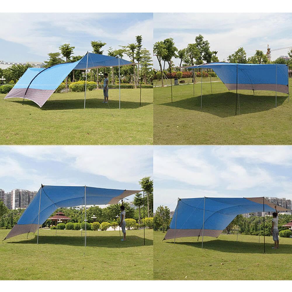 - 【ADJUSTABLE GIGANTE TENT FOR BEACH】The camping tarp is a multi-functional shelter which have many different ways to use and perfectly suitable for climbing,camping,fishing,travelling and party etc.