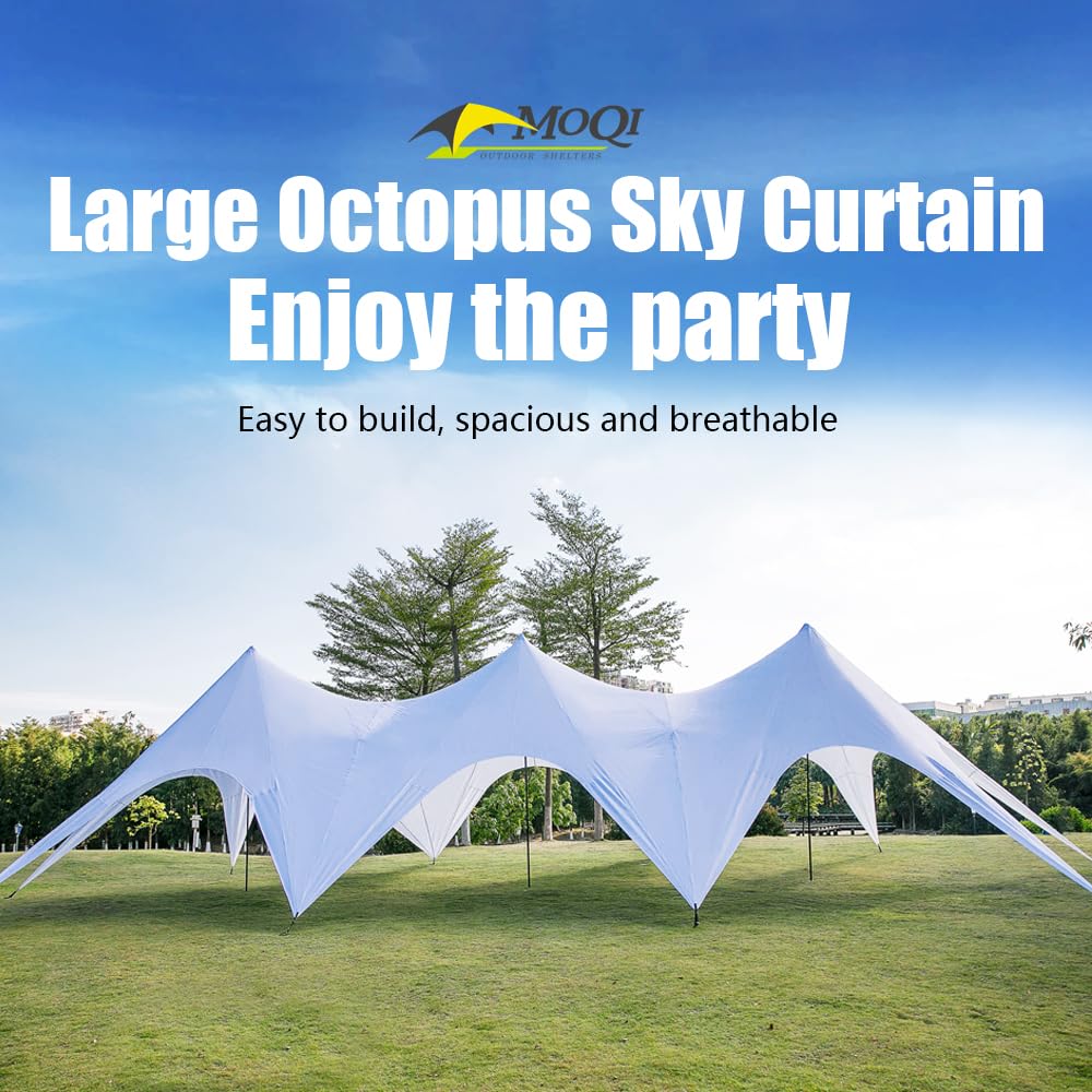 MOQI Camping Tent Tarp 65.6*28ft, Biggest Portable Octopus Beach Shade, Windproof Waterproof Canopy Sun Shelter UPF 50+ Sun Protection for Family Outdoor