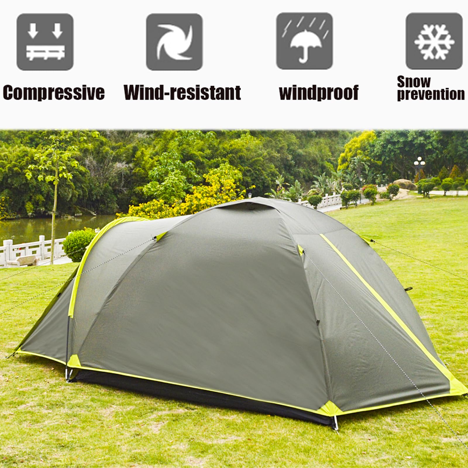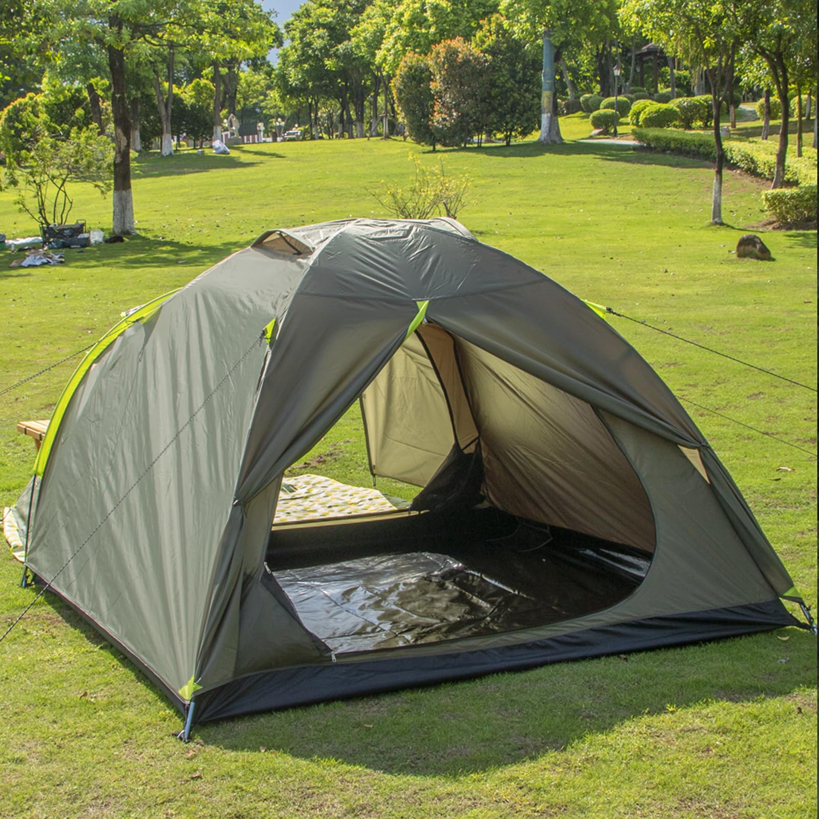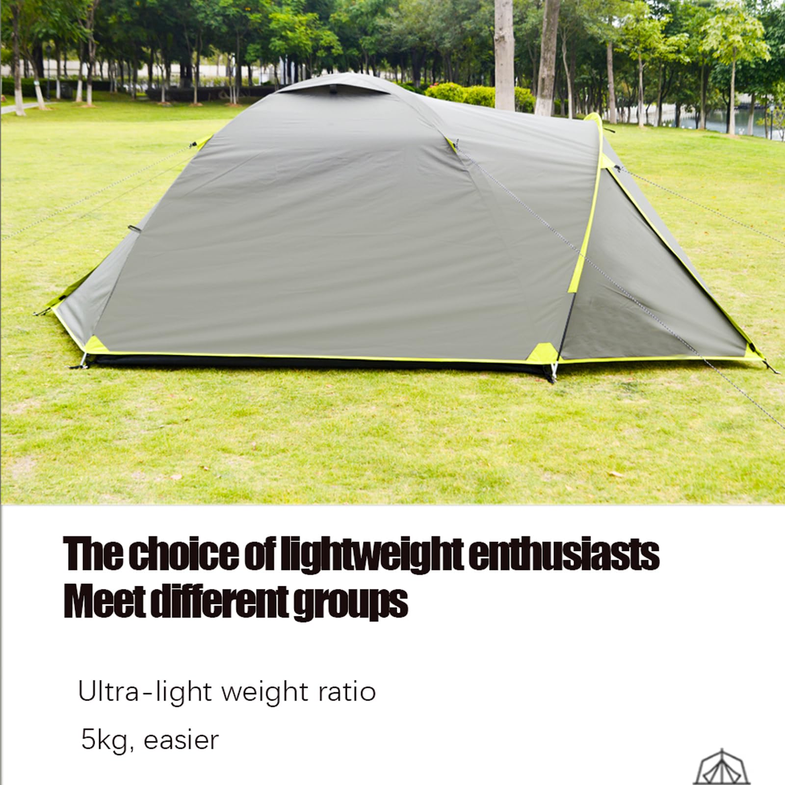 - đăRoomy 2-person Tent for 4 SeasonsăWith the unfolding size of 12.1*6.8*4.2ft .Our backpacking tent is spacious enough to accommodate up to 2-4 people easily. The couple tent also has double layers that is suitable for all seasons and preferred use for hiking, fishing, kayaking, car Camping, or bikepacking.