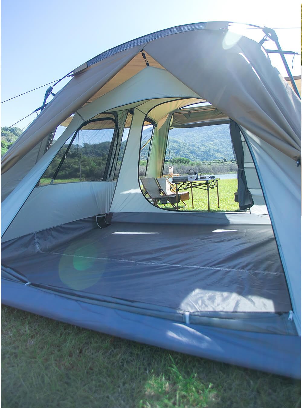 - 【Tent with Screen Room】All the doors and windows are double-layer designed, the camping tent has 3 porch and 2 mesh windows. The top canopy design allows for maximum ventilation and light, ensuring a comfortable experience while taking in the beauty of the outdoors. This multifunctional 8 person camping tent makes your family closer to the nature.