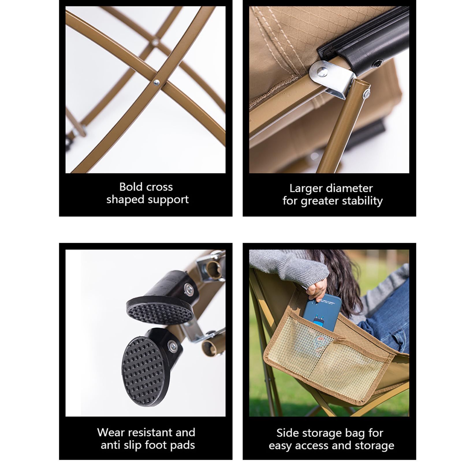 MOQI folding camping chairs is designed cross shape structure base is more stable and has stronger load-bearing capacity than others.
